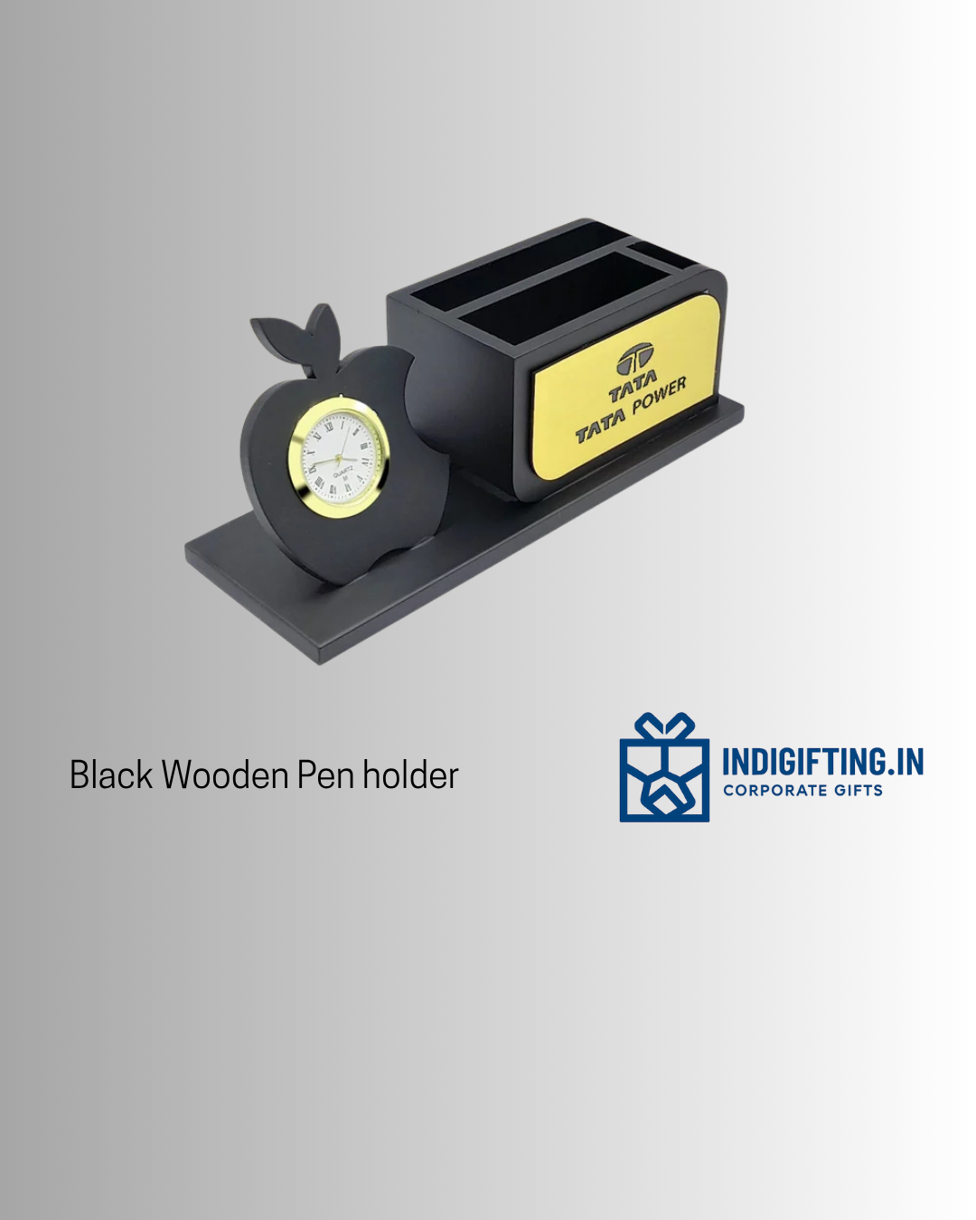 Black Wooden Pen holder with clock